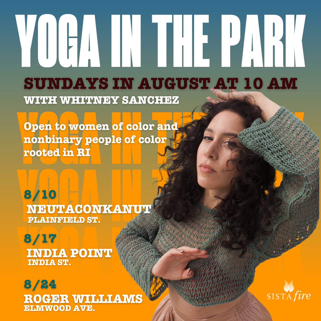 SISTA Fire is excited to host Yoga in the Park this August! Instructor and SISTA Fire member Whitney Sanchez will offer a 1-hour Beginner Yoga class from 10 - 11 AM on August 10th, 17th, and 24th.