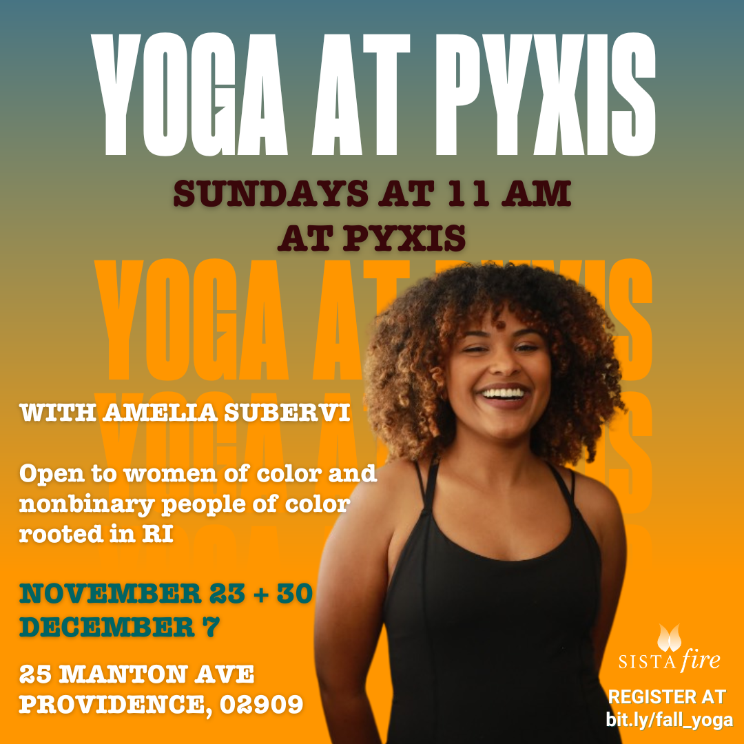 Join us this Fall for a free three-part community yoga series led by SISTA Fire member and certified yoga instructor Amelia Subervi! Each 1-hour session will offer a dynamic vinyasa flow open to all levels—beginners warmly welcome. Together, we’ll move through intentional sequences that weave together breathwork, meditation, and mindful movement, creating space to release what no longer serves us and reconnect to our bodies with care and intention.